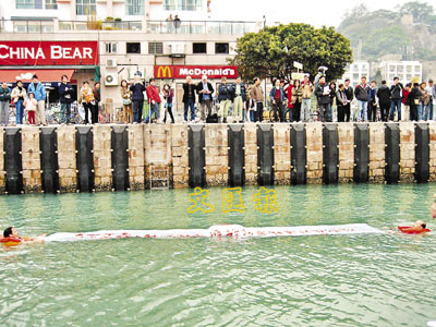 【本報訊】新渡輪的離島航線明日起加價6.5%,而約100名大嶼山梅窩居民及商戶,昨日遊行抗議新渡輪調高票價,其中1名梅窩居民聯同大嶼山區議員黃福根,在梅窩碼頭跳海以示不滿。