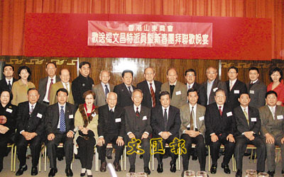 ■香港山東商會舉行宴會歡送楊文昌特派員,賓主合照留念。 本報記者沈清麗 攝