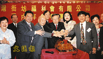 ■荃灣街坊福利會新春團拜,賓主切金豬慶賀。