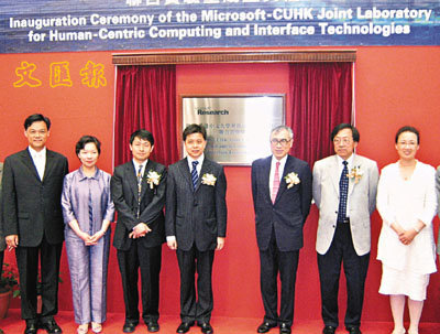 ■姚期智教授(右二)與中大校長劉遵義(右三)等主持微軟中大科技聯合實驗室揭幕禮。
