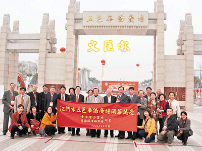 【本報訊】(記者 潘曉平)為祝賀江門市五邑華僑廣場落成剪綵及出席2006年江門市慈善公益萬人行活動,香港台山商會、香港台山旅港同鄉會聯合組成慶賀團專程於2006年2月11日返抵江門市,並於翌日上午出席在江門五邑華僑廣場舉行的盛大慶典。