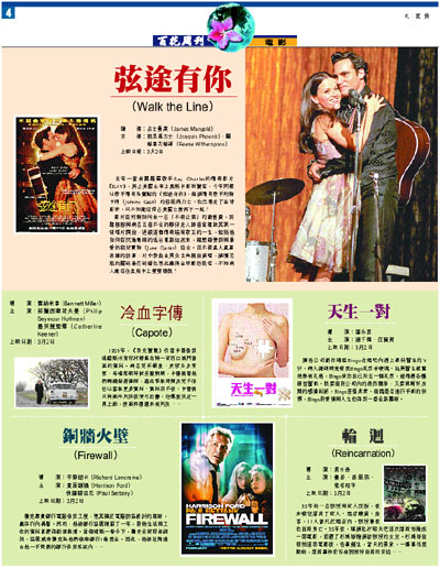 去年一套有關騷靈歌手Ray Charles的傳奇影片《RAY》,將占美霍士奉上奧斯卡影帝寶座,今年同樣以歌手傳奇為賣點的《弦途有你》,飾演傳奇歌手約翰卡殊(Johnny Cash)的祖昆馮力士,也已捧走了金球影帝,只不知能否像占美霍士般再下一城?