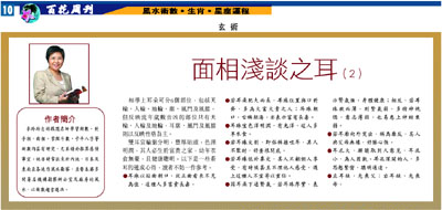 雙耳宜輪廓分明,豐厚貼頭,色澤明潤,其人必生於富貴之家,幼年衣食無憂,且健康聰明。以下是一些看耳的速成心得,讀者不妨一作參考。