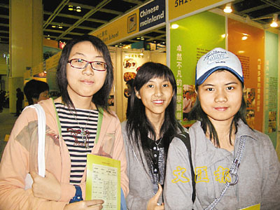 昨日博覽會最後一日,各教育攤位仍然人頭湧湧,堆滿查詢及索取資料的人群。與幾位同學一齊到場搜集資料的應屆中五會考生阿旺表示,由於內地發展前景良好,考完會考後準備到內地升學:「好多國家都關注中國的發展,日後的發展空間大一點,早點到內地可以提早學好普通話,提高競爭能力。自己識一點普通話,適應方面應該問題不大。」