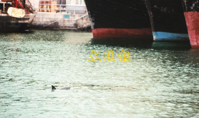 昨晨10時許,有漁民發現一條海豚在譚公廟道漁類批發市場對開的筲箕灣避風塘防波堤內水面游弋,不時環繞著一個浮泡方圓約20米的範圍穿梭來回,間中潛水覓食,一時浮上水面「抖氣」,一時又彈離水面,躍至半空表演跳水花式。遇有船隻駛過,牠即迅速避開;船隻離去後,牠再游回浮泡附近水面。