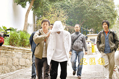 ■兩名假卡黨成員被「反扒隊」探員押走。