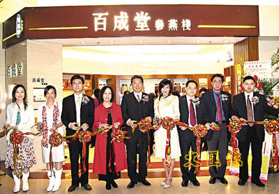 當日為百成堂鑽石山新店開幕主持剪綵的賓主包括:百成堂集團主席李應生伉儷,百成堂董事總經理李俊文伉儷,著名歌影視紅星趙學而,香港中醫藥管理委員會委員許生,香港中藥聯商會理事長曾超慶,香港參茸藥材寶壽堂商會理事長陳德泰。