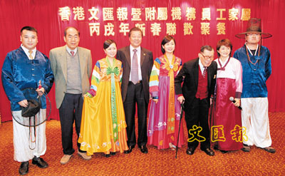 【本報訊】本報暨附屬機構員工家屬新春聯歡聚餐,26日在灣仔華潤大廈好彩海鮮酒家舉行,筵開63席。本報董事長社長張國良、名譽董事長張雲楓、顧問李子誦與本報員工、家屬以及退休職工500多人歡聚一堂,共祝狗年的來臨。