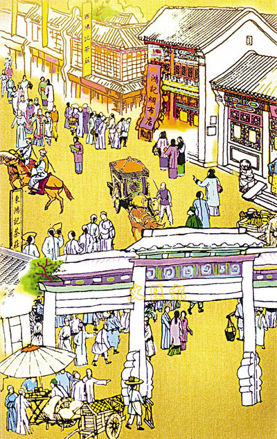 被譽為「中國第一吃」的全聚德烤鴨,始建於1895年(清光緒21年),距今142年;京城南味食品第一家的稻香村糕點亦香透京城111年;建於清康熙8年公元1669年,歷經八代皇帝,獨辦官藥的同仁堂,亦享譽京城337年;創建於康熙十一年(1672年),以文會友、榮名為寶334年的榮寶齋;始創於清朝光緒三十四年(1910年),取「一元復始,萬象更新」的張一元茶莊,清湯香馨京城106年;始建於清朝光緒十三年(1887年),清幽雅致119年的吳裕泰茶莊;較早進行企業管理的內聯升鞋店,以「履中備載」之特色服務,被世人傳頌153年;美國零售商業巨頭沃爾瑪公司創始人山姆.沃爾頓生前曾說:「我創立沃爾瑪的最初靈感,來自中國一家古老商號,它的名字來源於傳說中的一種可以帶來金錢的昆蟲——」他指的是瑞蚨祥。
