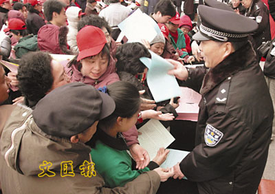 ■北京市民踴躍領取《中華人民共和國治安管理處罰法》宣傳材料。 新華社