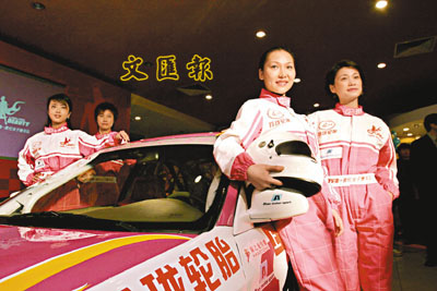 ■28日上午,中國首支由清一色都市女性組成的美女賽車隊在北京金港汽車公園亮相。中新社