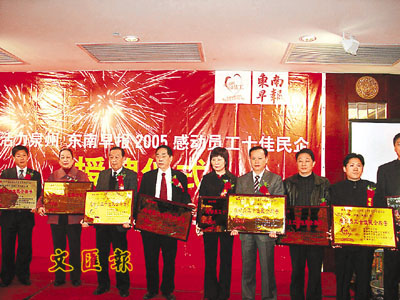 ■隨著「民工荒」的再次來臨,為了留住民工,各地企業可謂奇招百出,日前於泉州悅華酒店舉行的「感動員工民企」體現當下對民工的另一種關注。 林志鴻 攝