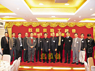 飲食工會主席顏振雄、副主席袁福和、鄭斌等工會負責人在場迎迓來賓。袁福和致詞時表示,香港經濟正進一步回升,飲食行業也明顯好轉,作為打工仔很樂意看到僱主生意好轉,希望能水漲船高。工會促請僱主在生意好景時,能善待員工,提升工資,增加人手,減少工時,提高員工服務質素,只有這樣勞資齊心,對公司生意有幫助,做到勞資兩利局面。