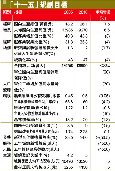「十一五」規劃目標 (圖)