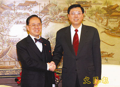 據悉,到京數日,曾蔭權分別拜會了國務院發改委、商務部、公安部、中宣部等多個部委,今日下午則與貴州省長石秀詩舉行會面。會談中,曾蔭權表示,希望在「五一」黃金周前,落實省會貴陽市的市民來港作個人遊的安排。