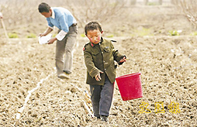 ■廣東將成為中央新農村試驗田之一。圖為內地一男童在田間耕作。 路透社