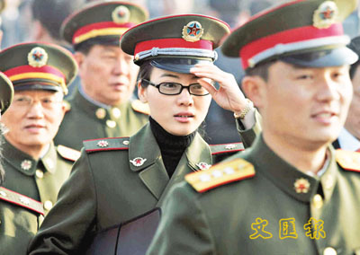 ■十屆全國人大四次會議在北京人民大會堂開幕,解放軍代表團步入會場,其中一位女軍官吸引了記者的鏡頭。 中新社