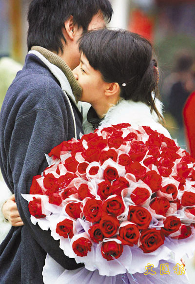 ■每逢情人節,全國各地玫瑰銷量大增,街頭到處充滿溫馨場面。