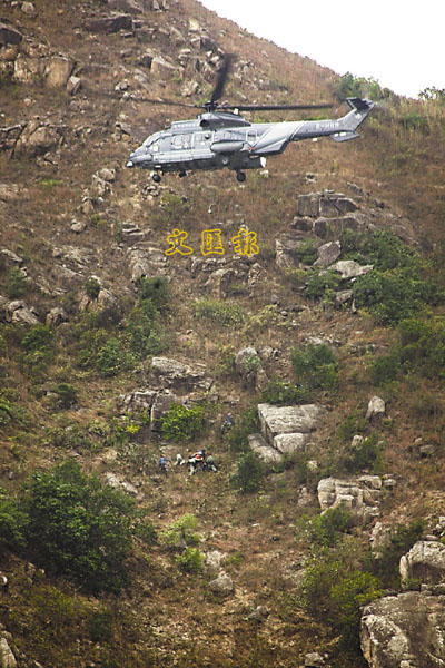 ■飛行服務隊的直升機,將墮山老翁(紅圈內)救起送院。