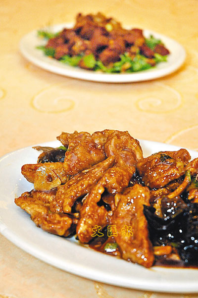 師傅把豬大腸先上漿,再用油炸,加上木耳、青瓜及甘筍片配料,蒜片有辟味作用,入口皮脆肉滑,用來佐酒就最適合。$78