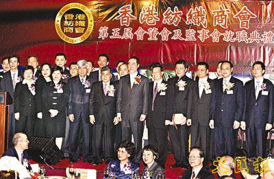 【本報訊】(記者 潘曉平)聯泰控股行政總裁陳亨利最近榮任香港紡織商會第5屆會長,而旭日集團總裁楊勳則出任該會監事長一職。香港紡織商會並於前晚假座金鐘港麗酒店隆重舉行會董及監事就職典禮暨晚宴,當晚更有出身紡織製衣世家的財政司司長唐英年蒞臨任主禮嘉賓,主持向新一屆正副會長、會董,正副監事長及監事頒發選任證書,並向兩位永遠榮譽會長楊釗、黃守正頒發紀念品致謝,唐英年在祝賀新一屆會董及監事會之餘,也祝願紡織成衣業能夠在商會領導下踏上新的台階。