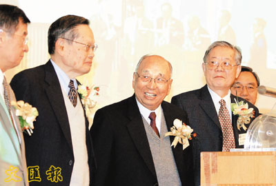 查濟民(右)與求是科技基金顧問楊振寧等共同啟動「求是科技基金」十周年紀念活動。