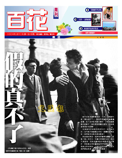 其中一幅最經典的圖片,便是法國攝影大師羅貝爾杜瓦諾(Robert Doisneau)的《市政廳之吻》(The Kiss at City Hall)。相片於1950年首次刊出,被譽為街頭直接攝影的經典,40年後卻被揭發原來是攝影師花錢叫男女主角對著鏡頭這樣做。另一張同樣以「吻」傳世的是1945年發表的《VJ-Day Kiss》,影片被人質疑並不是拍攝於二次世界大戰日本投降的「VJ-Day」。