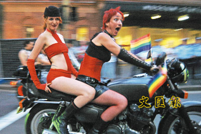 ■《斷背山》只獲最佳導演,飲恨奧斯卡。不過,該片早已向世界成功推銷同性戀無罪之理,澳洲悉尼的基民lesbians就來個大遊行,吸引了五十萬人圍觀,你話入面有幾多人係孿呢? (法新社)