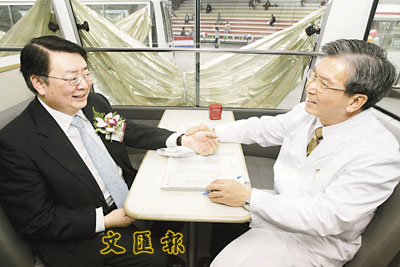 ■林秉恩參觀仁愛堂新增的3輛流動中醫醫療車,即場讓醫師診症。本報記者潘達文 攝