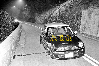 ¡@¡i¥»³ø°T¡j¥Û¿D¹D¬Q±áµo¥Í¨®º×¡C¤@½ø¸üµÛ¨â¨k¤kªºMini Cooper¨p®a¨®¡A¾p¸g®ãÆWºq³s¦Ú¨¤®É¡AÃhºÃ¦b°ª³t¤U¥¢±±¶V½u¡AªïÀY²r¾Ù¥t¤@½ø¨p®a¨®¡CMini Cooper¥kÃ䨮ÀY½üL³s¶b¤@¨Ö¸²æ¡A©¯¨â¨®¤W¦@4¦W¨k¤k¶Ë¶Õ¤£ºâÄY«¡A¨ÃµL©Ê©R¦MÀI¡C