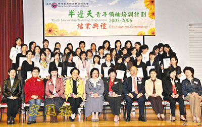 ■香港婦協為青年領袖培訓計劃舉行結業禮,賓主與結業學員合照。本報記者趙焜崗 攝