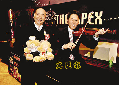 ■梁焯鏗(右)對中原別出心裁的禮物小提琴讚不絕口,姿勢多多。