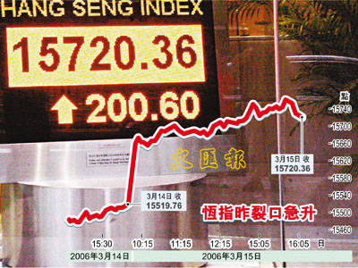 有基金經理則表示,港股昨日在成交額不高下升200點,而且藍籌股雖然普遍上升,但升幅主要集中於中移動(941)及匯控(005)兩隻重磅股,兩股已合共令恆指上升100點。他相信,港股昨日上升是大戶借美股升勢而進行挾倉活動,恆指今日若未能企穩,將會「打回原形」。至於港股能否企穩在現水平,很大程度受美股左右,但他指,美國國債收益下跌,紓緩市場加息的憂慮,無疑是有利美股表現。