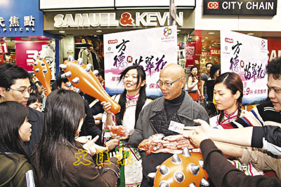 ■羅家英在旺角街頭大派禮物。
