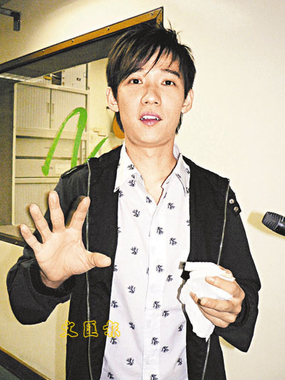 【本報訊】(記者 李思穎)阿牛來港為新碟展開密集式的宣傳工作,昨日便從深圳趕返港到電台接受直播訪問,礙於過關時電腦出現故障,時間受到耽誤,阿牛遲了十五分鐘才到達電台,由於整個上午都沒有吃過東西,阿牛在訪問時不在狀態,腦內一片空白,更在咪前大嚷「好肚餓」,只想起三文治,當助手拿來三文治給他充飢,阿牛猶如「上電」,恢復生猛。
