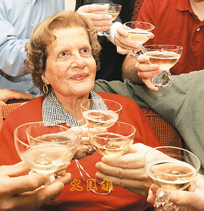 90歲的阿特曼奪回產業後,接受親人祝賀。 美聯社