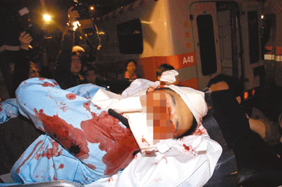 ■一名頭部中槍的警員送院時已全無知覺。本報記者鄺福強 攝