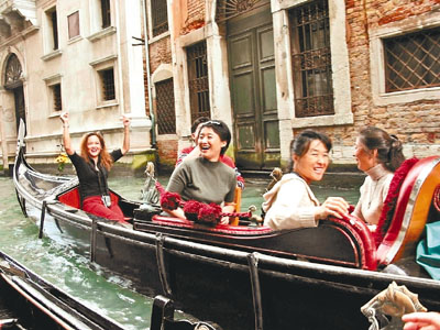 ■去年從中國到歐洲旅遊的人數達到100萬人次。圖為中國遊客在意大利歷史文化名城威尼斯乘船遊覽。 資料圖片