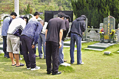 【本報訊】「隋漣窌膜薄A兇手仲未現身,遲虧穭浀茈穧雩q。」梁成恩在警校受訓時的一名教官,昨約同10名與梁同期的警校師兄弟,專誠到「浩園」拜祭梁成恩感慨地說;一行11人臨走時,教官站在墓前輕語,似是將兇手伏法之事告訴梁成恩。