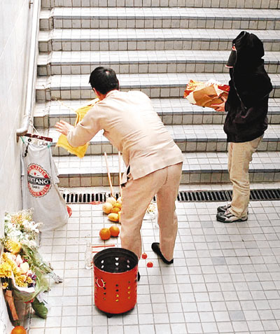 ■徐步高妻子由道士陪同,在兇案現場拜祭。