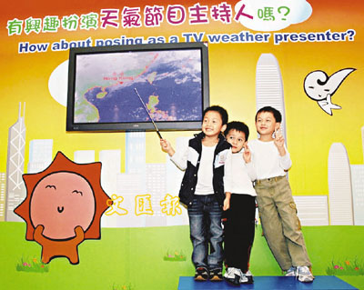 今年開放日的新焦點是模擬電視天氣錄影室,很多年青參觀者在天氣資訊圖像前一嘗擔當電視天氣報道員的滋味。不少參觀人士是為了天文台的生態遊而來的,希望親身體會尖沙咀鬧市中的小小「森林」。