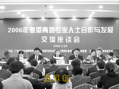 【本報珠三角新聞中心實習記者劉揚、記者唐苗苗廣州電】為促進粵港兩地在CEPA框架下專業服務領域的互補與合作,兩地醫學、律師、園藝、會計等專業領域的300餘人出席日前在廣州舉行的「2006年粵港兩地專業人士合作與發展交流座談會」。