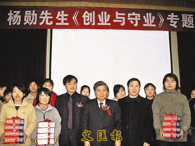 隨後,楊勳應河北科技大學的邀請,為該校師生作了題為「創業與守業」的專題講座。楊勳結合自身的成功經驗,以風趣幽默的實例,分別從創業、管理、守業等不同方面給予學生指導。告誡他們獲得成功需要善於觀察,善於思考,善於總結;需要具備事業心、決心與恆心。同時,應轉變擇業觀念,要勤奮努力、吃苦耐勞。在場同學踴躍提問,楊勳睿智的回答贏得了科大師生的掌聲。