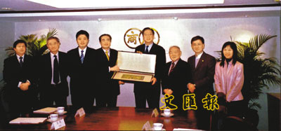 ■廠商會副會長施榮懷(右四)接受江蘇省無錫市錫山區區委書記徐劼(左四)致送紀念品。