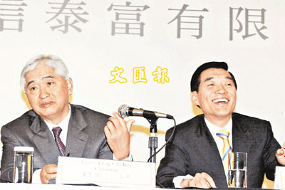■左起:主席榮智健及董事總經理范鴻齡。本報記者張偉民攝