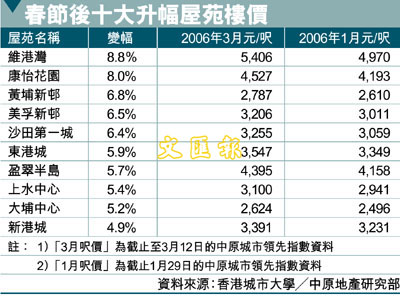 春節後十大升幅屋苑樓價 (圖)