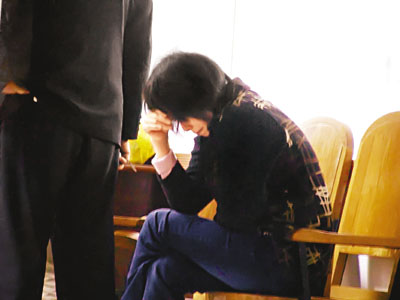 ■死者的親友傷心欲絕,不停低首飲泣。 本報記者博羅傳真