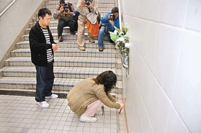 ■市民專誠到槍擊案現場,拜祭殉職警員曾國恆。