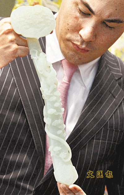 【本報訊】(記者 陳朗昇)除龍袍戰甲外,拍賣會尚有大量工藝品,其中一件價值連城的白玉如意,以來自新疆的羊脂白玉雕琢而成,堪稱世間罕見,估值高達1,500萬港元。