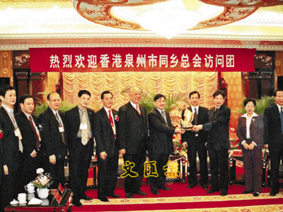 在座談會上,訪問團與泉州市委書記鄭道溪、市長朱明等家鄉領導歡聚一堂,共商發展大計。鄭道溪首先介紹了過去一年泉州的發展情況。他說,2005年泉州市經濟社會各項事業發展態勢良好,各項指標位居閩省前列,尤其是在產業結構調整方面取得重大突破。泉州已進入大項目、大發展、大帶動的發展時期。這些成績的取得,與海內外鄉親的關心和支持是分不開的。泉州所取得的每一個成就,都凝聚著海內外鄉親的心血。